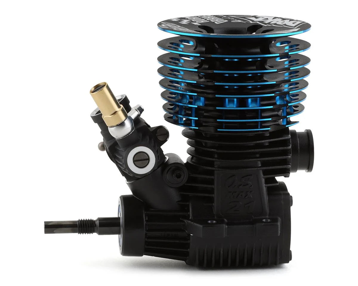 O.S. Speed B21 AD3 Adam Drake 3 Competition .21 Nitro Engine with 2100SC Pipe is the latest evolution of this potent racing engine. Designed in collaboration with the legendary Adam Drake this AD3 edition features several updates and improvements over the already competitive B21 engine platform. The AD3 uses an updated crankcase inner design for linear power making the transition from low to middle to high speeds almost seamless. Adding to this is an updated backplate with a steel lining reducing resistance and aiding in not only extra power but better fuel mileage. Helping to keep weight in check a freshly designed cooling head features a 3mm lower height and is 14g lighter overall lowering the engine's center of gravity and shedding weight in a critical area. This combo includes a 2100SC Pipe and 75mm manifold recommended for buggy racing applications.